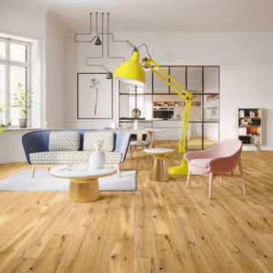 Třívrstvé dřevěné podlahy mají vysokou mechanickou stabilitu a odolnost vůči teplotním a vlhkostním výkyvům. 100% dřevěná třívrstvá podlaha se skládá z pohledové nášlapné vrstvy, která je kolmo podložena lamelami střední vrstvy, pod něž se opět kolmo lepí spodní vrstva, kontaktní s podkladem. Charakteristická pro třívrstvé dřevěné podlahy je stabilní konstrukce a také rychlá a snadná montáž. Třívrstvou dřevěnou podlahu je možné trvale přilepit k podkladu čímž docílíme tichého došlapu s pohlcením vibrací z kročejového hluku nebo využít pokládku plovoucím způsobem za pomocí zámkového systému. Na rozdíl od masivního dřeva umožňuje třívrstvá podlaha možnost instalace na podlahového topení s příjemným pocitem doteku přírody.